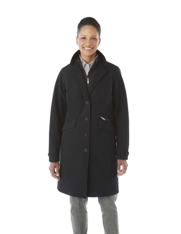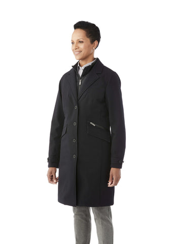 The Womens Rivington Insulated Jacket delivers a high-end look with excellent protection from the elements. This 3/4 length waterproof jacket features a stylish wool-like texture with critical seam sealing, a breathable membrane and water repellent finish to keep you dry. Its comfortable for spring and fall, but when temperatures drop, the storm collar and facing, along with the high tech faux down insulation, keep you warm. Lightweight construction, articulated elbows and ergonomic sleeves maxi