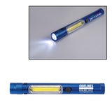 This work light has a multi light panel aluminum safety tool torch with 1 bright white 1 Watt bulb on front, and 3 Watt super bright COB light panel on body. It includes a metal pocket clip at the side and a heavy duty magnet at base to attach just about anywhere to light up your workspace. Uses 3 AAA batteries, included, and replaceable. United States Design Patent No.: US D817,528 S. Production time may vary due to imprint method. Complies with Prop 65. 6.75" L x 0.875" Diameter
